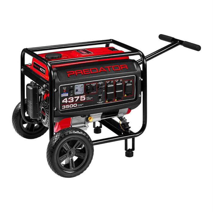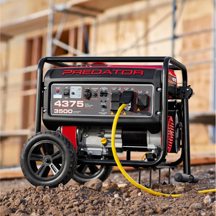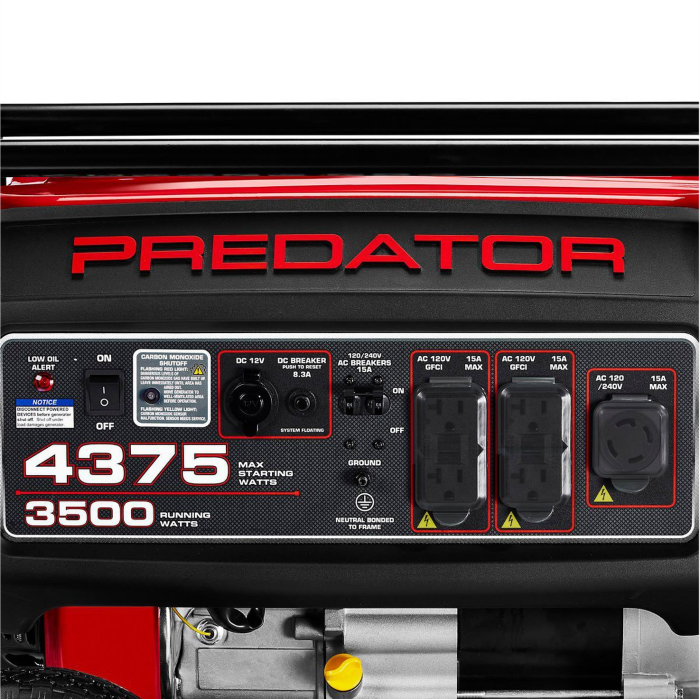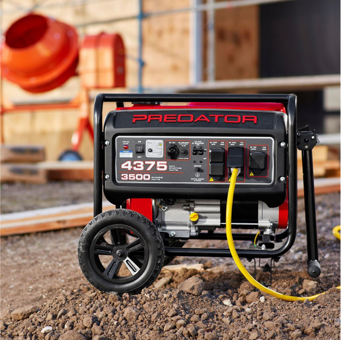 El Generador 4375W Predator, con 3500 Watts de funcionamiento, está diseñado pensando en la fiabilidad y la seguridad. Alimentado por un motor de gas PREDATOR® de 212cc, este generador es compacto, ligero y proporciona energía donde sea necesario.